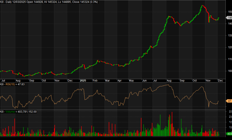 From a technical standpoint, the Nigerian market maintained its bullish structure. The All-Share Index continued to trade above its short-term moving averages, confirming the strength of the ongoing uptrend. Momentum indicators such as RSI and MACD reflected a sustained increase in buy pressure, while market volume patterns showed expanding participation driven largely by institutional flows. The Money Flow Index indicated fresh capital inflow, reinforcing the view that investors are gradually returning with stronger conviction. Immediate resistance remains at the 145,800 region, while initial support is established around 144,500. A decisive break above resistance could set the market up for further upside, especially as December’s historical trend favours accumulation and elevated activity levels.