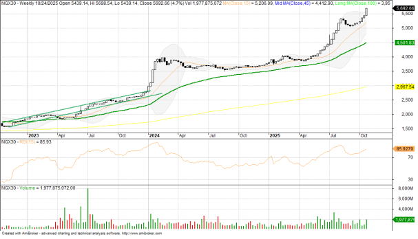 The NGX ASI maintained a strong upward trend this week, breaking key resistance levels of 150,000 and 153,000 points, indicating sustained bullish momentum. Technical indicators show that the market is in an overbought zone, with the Relative Strength Index (RSI) nearing 72, suggesting caution for short-term traders. Support levels are identified around 152,000 and 150,000 points, which could provide pullback entry opportunities for investors.