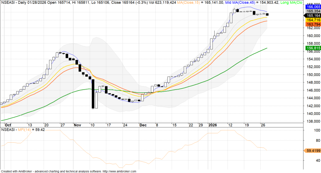 The Nigerian equities market extended its midweek pullback as sustained profit-taking across key stocks dampened investor sentiment and reversed gains recorded in prior sessions. The cautious mood reflected ongoing portfolio rebalancing by investors who are increasingly selective amid mixed global cues and near-term valuation concerns in some counters.