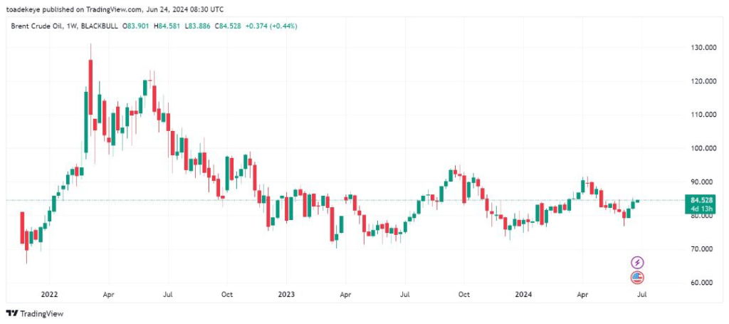 Crude prices eased about 1% on Friday on worries that global oil demand growth could be hit by a strong U.S. dollar. The U.S. dollar (.DXY), rose to a seven-week high versus a basket of other currencies.A stronger U.S. dollar can also reduce demand for oil by making greenback-denominated commodities like oil more expensive for holders of other currencies. Brent futures was down by 0.6%, to settle at $85.24 a barrel, while U.S. West Texas Intermediate crude (WTI) by 0.7%, to close at $80.73.For the week, both crude benchmarks were up about 3% after gaining about 4% last week.