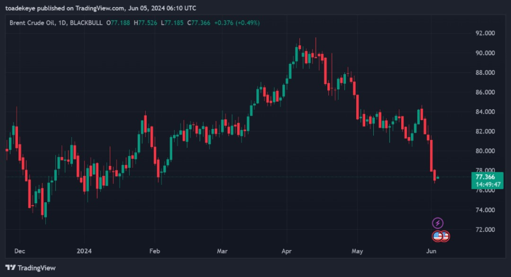 On Tuesday, oil prices dropped by over $1 per barrel due to doubts surrounding an OPEC+ move to increase supply later in the year, amid a global market grappling with weakening demand signals. Brent crude futures settled down 84 cents, or 1.07%, at $77.52 a barrel while U.S. West Texas Intermediate crude futures finished down 97 cents, or 1.31%, at $73.25. On Sunday, OPEC+ and its allies led by Russia, decided to extend the majority of their oil production cuts until 2025. However, they allowed for gradual adjustments in the form of voluntary output increases from eight members, commencing in October.