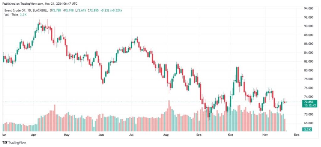 Oil prices surged nearly 3% to their highest in three months, driven by U.S. sanctions aimed at disrupting Russia’s oil production and exports. Brent crude settled at $79.76 per barrel, and WTI crude at $76.57, with both contracts briefly rising over 4%. The sanctions are expected to impact Russian oil shipments to India and China, pushing up global prices. Extreme cold weather in the U.S. and Europe further boosted demand for heating oil, with diesel futures climbing 5.1%. Analysts forecast a significant rise in global oil demand in early 2025, led by heating fuels.