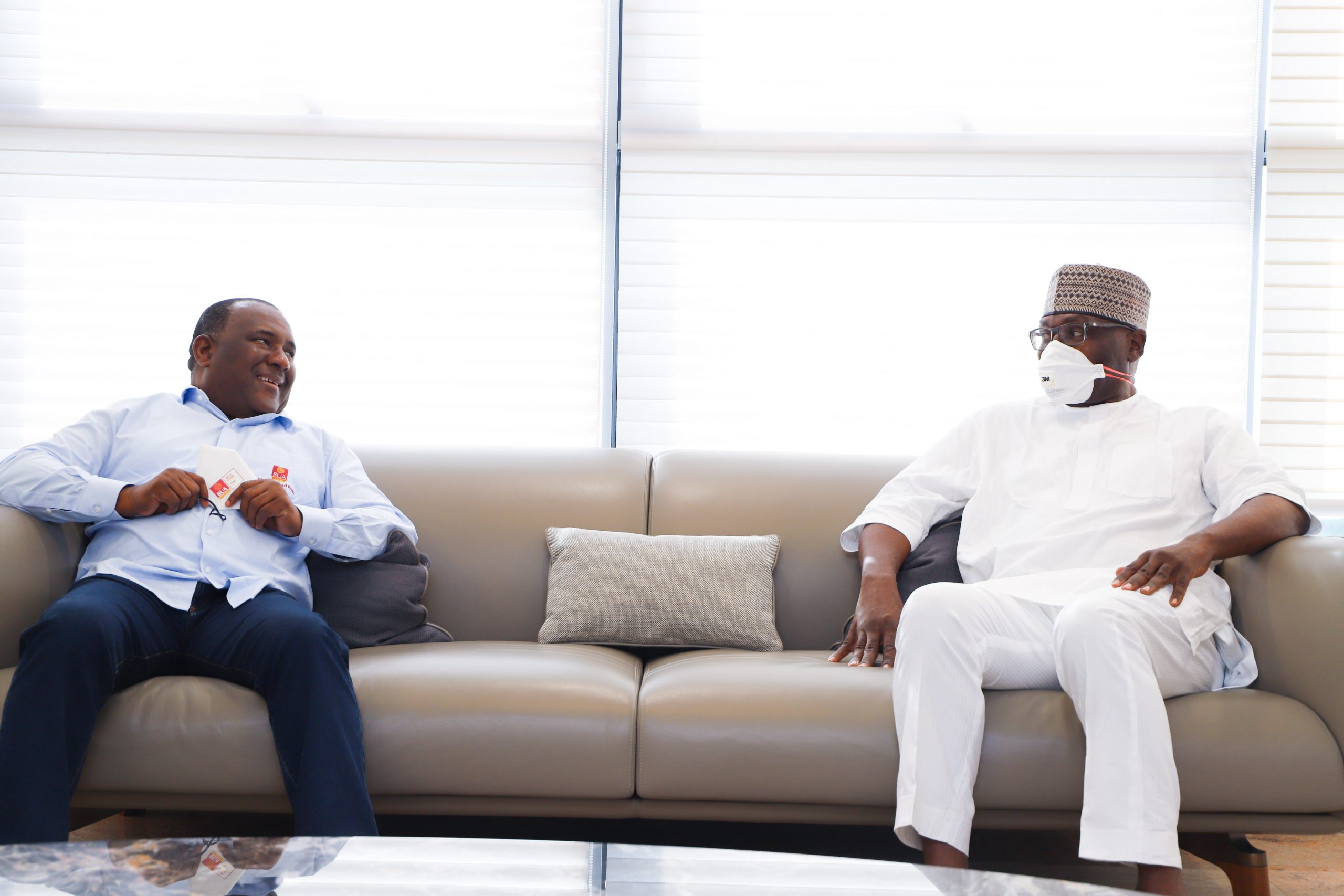Caption: Abdul Samad Rabiu, Chairman BUA Group (left), and Gov. Abdulrahman Abdulrazaq of Kwara state when the governor paid a courtesy call on BUA Group, on Thursday, January 7, 2021.