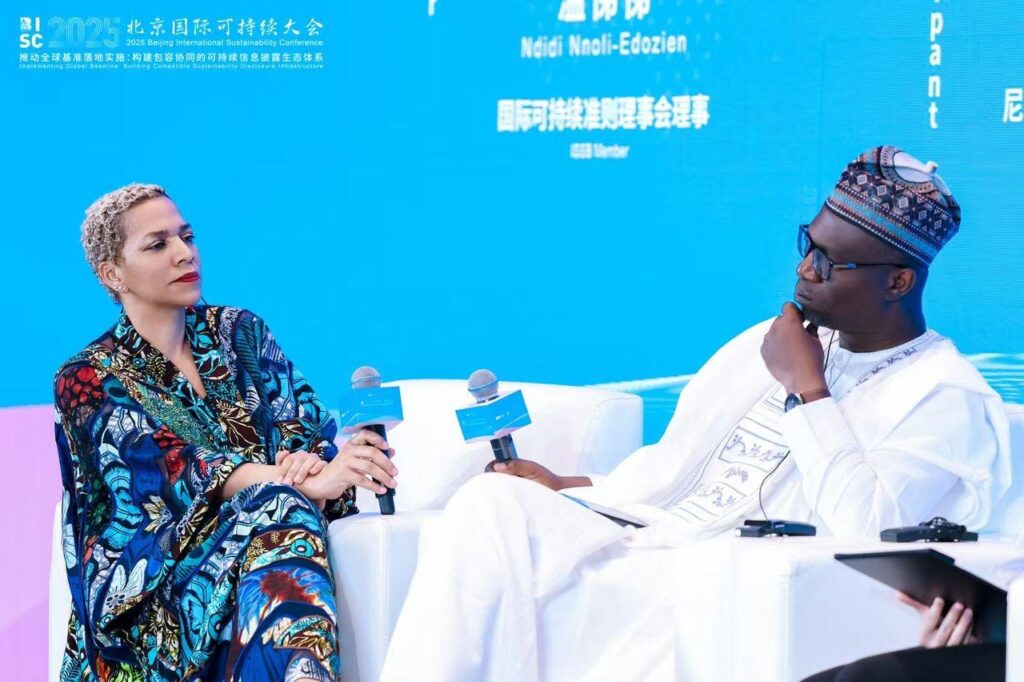 Caption: Dr Ndidi Nnoli-Edozien, Africa Representative & Board Member, ISSB, IFRS Foundation (left), and Director-General, Securities and Exchange Commission (SEC), Dr. Emomotimi Agama at a panel discussion during the 2025 Beijing International Sustainability Conference in Beijing, China recently.