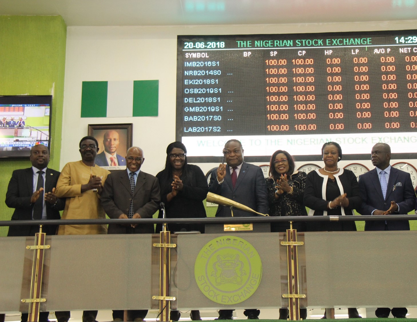 Caption: Commissioner for Health, Lagos State, Prof Akin Abayomi receiving protective suits donated by the Capital Market support Committee on COVID 19 to the Lagos State Government from the chairman and Managing Director/CEO of NASD Plc, Bola Ajomale, in Lagos recently, with them from left, Permanent Secretary Lagos State, Ministry of Health, Dr. Olusegun Ogboye.