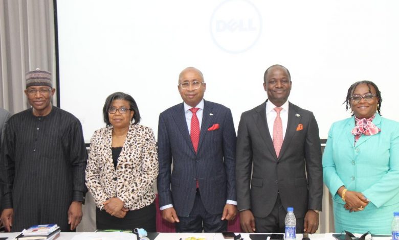 Caption: From left, Lamido Yuguda, Director General, Securities and Exchange Commission (SEC); Ms. Patience Oniha, Director General, Debt Management Office (DMO); Haruna Jalo-Waziri, Managing Director/CEO, Central Securities and Clearing System Plc (CSCS); Temi Popoola, Chief Executive Officer, Nigerian Exchange Limited (NGX); and Dr. Angela Sere-Ejembi, Director, Financial Markets Department, Central Bank of Nigeria (CBN), during a strategic meeting with between the DMO and other market stakeholders in Lagos on Thursday, February 17, 2022.