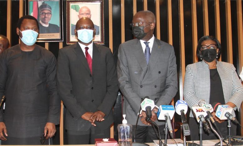 Caption: From left, Executive Commissioner, Operations at the Securities and Exchange Commission (SEC), Dayo Obisan; Managing Director/Chief Executive Officer of the Family Homes Funds, Femi Adewole Babatunde; Minister of Works and Housing Raji Fashola; and Director-General,  Debt Management Office (DMO), Mrs. Patience Oniha during the housing investment forum with the theme “Exploring the Option of National Housing Bond for Housing Development: Public-Private Sector collaboration” in Abuja on September 9, 2021