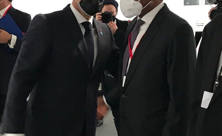 Caption: President of France, Emmanuel Macron (left) in a discussion with Aliko Dangote, President of Dangote Industries Limited, at the ongoing summit on African Finance Meeting/Post COVID-19 Economic Recovery for Africa in Paris, France on Tuesday.
