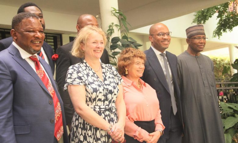Caption: Minister of State for Power, Godwin Jedy-Agba; Minister for Africa United Kingdom, Mrs. Vicky Ford; British High Commissioner to Nigeria, Mrs. Catriona Laing; CEO of InterCredit, Chinua Azubike; and Director-General Securities and Exchange Commission (SEC), Lamido Yuguda; during the Signing of MOU on Rural Electrification between Nigeria and United Kingdom in Abuja on Monday, February 21, 2022.