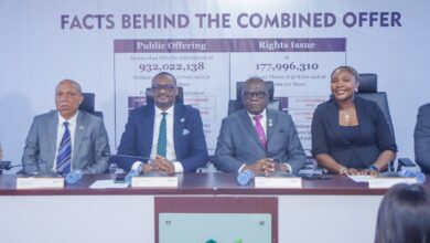 Caption: Temi Popoola, Chief Executive Officer, Nigerian Exchange Limited (centre) flanked by Council Members of the Chartered Institute of Stockbrokers and executive committee officers of the Nigerian Exchange Limited after his investiture as a fellow of the institute on Monday in Lagos. From left are: Garuba Kurif, a Council Member; Josiah Akerewusi, Registrar & Chief Executive of CIS; Fiona Ahimie, 2nd Vice President, CIS; Elizabeth Ebi, another Council Member; Oluwole Adeosun, President of the Institute; Oluropo Dada, First Vice President; Oluwaseyi Abe, also a Past President, and Jude Chiemeka, Divisional Head, Capital Markets, NGX, alaso a CIS Council Member, during the induction Ceremony of the NGX CEO as a Fellow of the Institute on Monday in Lagos