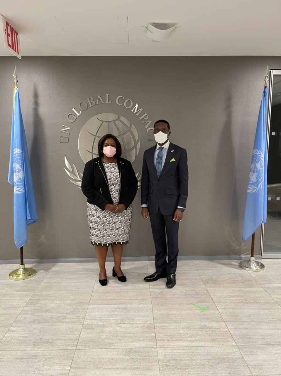 Caption: Ms. Sanda Ojiambo (left), Chief Executive Officer and Executive Director, United Nations Global Compact (UNGC) with Mr. Oscar N. Onyema OON, Group Managing Director/Chief Executive Officer, Nigerian Exchange Group Plc, after a bilateral meeting of both organizations on Friday in New York.