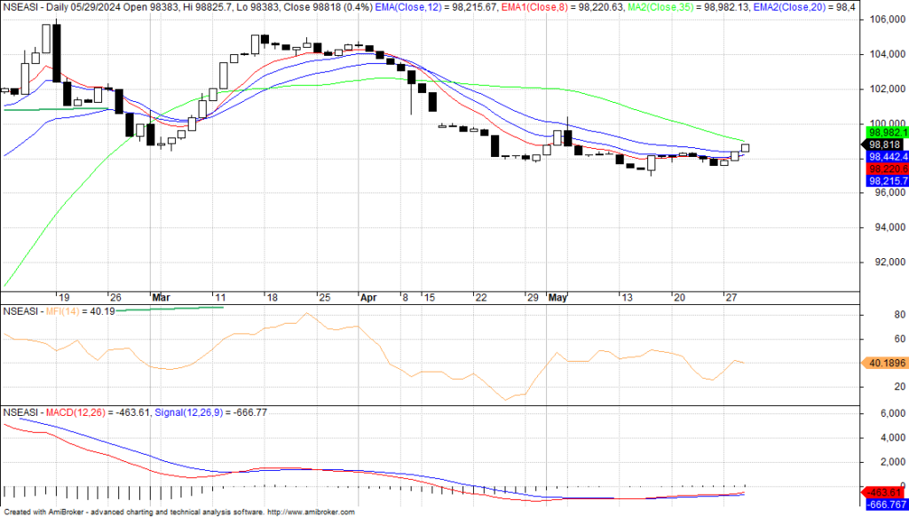 Meanwhile, midweek trading started in the green and it was sustained for the rest of the session, on buying interest and positioning in blue chip companies , a situation that pushed the NGX’s index to an intra-day high of 98,825.74bps from its lows of 98,383.04bps, before closing above its opening level at 98,818.04bps.