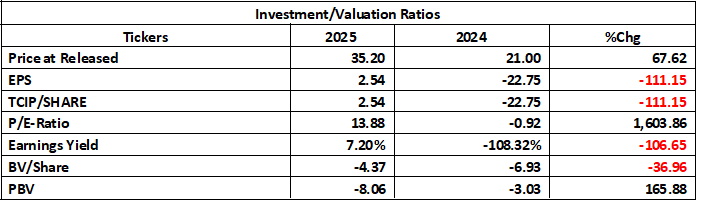 The company recorded a strong earnings recovery, with Earnings per Share rising to N2.54 from a loss of N22.75 each, reflecting a significant turnaround from deep losses to profitability. The Price to Earnings ratio improved to 13.88x from -0.92x, suggesting that the market is beginning to reprice the stock in line with renewed earnings strength.