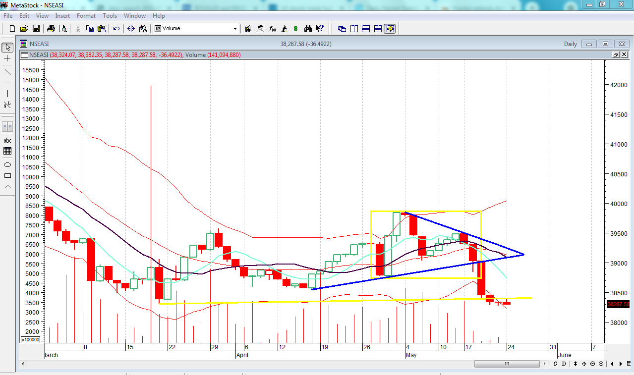 The NGX’s index action and indicators are heading in the same direction on a low traded volume and mixed sentiments in the midst of rising yield in bond and TB.