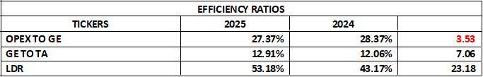 Final Efficiency Verdict: The bank demonstrated an improved cost control, better asset utilization, stronger revenue generation from asset, plus a healthy and expanding loan deployment. We therefore conclude that, operational efficiency has clearly improved and is supporting the strong profitability growth seen earlier.