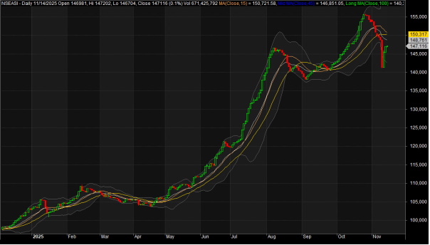 Short-term technical indicators suggest the market is consolidating after a sharp sell-off earlier in the week. The ASI currently hovers near the 147,000 support-turned-resistance level, while the 50-day moving average at 145,000 points continue to act as a pivot for further recovery. Momentum oscillators such as the MACD show signs of stabilization, implying a potential for selective sector rallies, especially in Banking, Consumer Goods, and Insurance stocks. However, investor sentiment remains fragile due to lingering concerns over the unsettling Capital Gains Tax, the impact of which is being made worse by the global macroeconomic pressures.