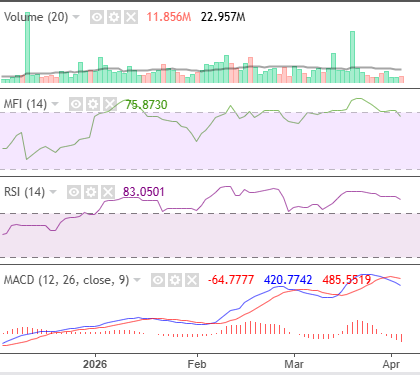 Other indicators tried to conform to the index’s distribution phase. Although liquidity and momentum remained high, MFI and RSI tilted downward, reflecting today’s index sentiment.