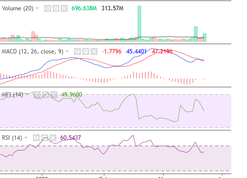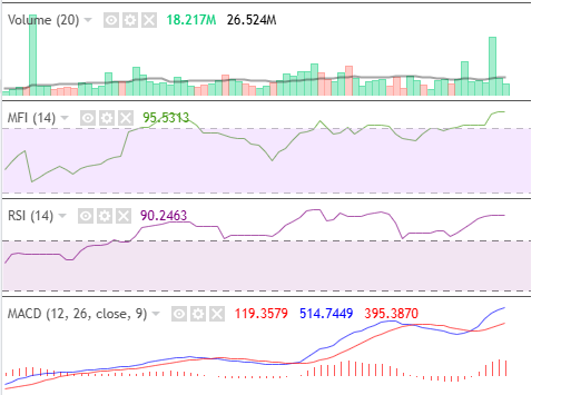 The indicators in the stock offer a clear message: strong bullish sentiment. MFI and RSI remain high at 95.53 and 90.25, respectively. The volume for this bull sentiment is low; however, the overall trend dominates the signal report from volume.