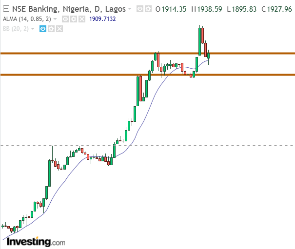 The banking sector traded near its resistance level, indicating a potential market recovery. With this price action, market analysts anticipate the index will surpass its resistance level, signalling another bull run. However, one must factor in other indicators to get a clearer picture of this index’s performance.
