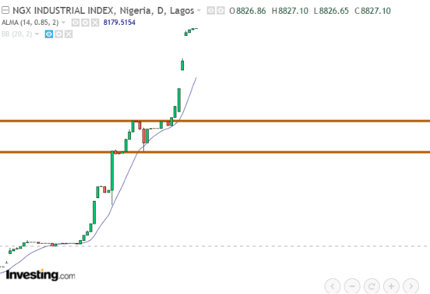 The NSEASI remains strongly bullish, following the insurance performance index. Other sectors show signs of recovery amidst profit-taking. The insurance sector has better potential and room for participation. Finally, the industrial sector continues to show signs of a potential pullback