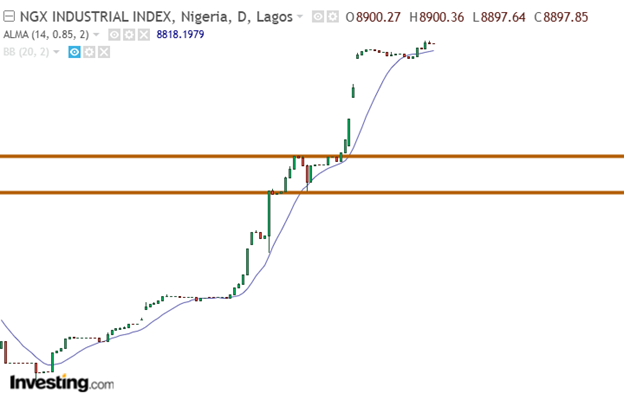 Following the NGXBNK’s outstanding performance, the Relative Strength Index (RSI) indicated that the index is fully in its overbought region. This action aligns with the index’s current sentiment.