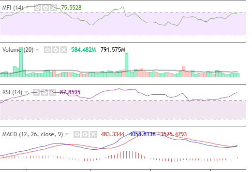 The bearish volume remained solid while the RSI closed in its overbought region. MFI indicated that money flow is solid in the index, with a reading of 58.77. MACD’s bearish signal remained consistently flat, meaning investors are holding their position in this index.