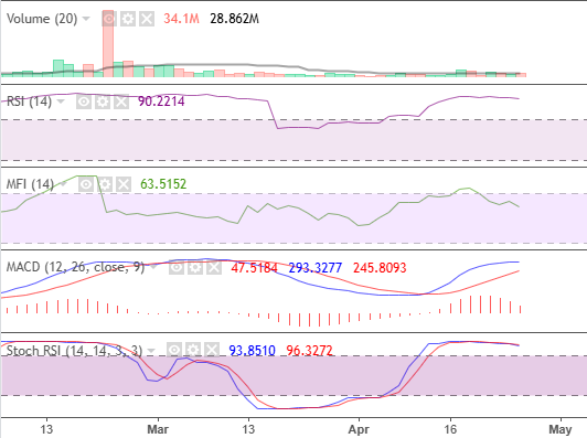 The indicators aligned with the overall bullish sentiment. MACD transitioned into a bullish signal, gaining strong momentum. Stochastic closed at an equilibrium, indicating that investors should be cautious, as the market can pull back anytime. MFI and RSI indicated high liquidity and momentum.