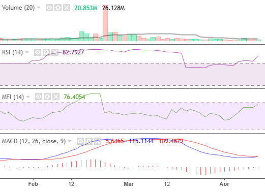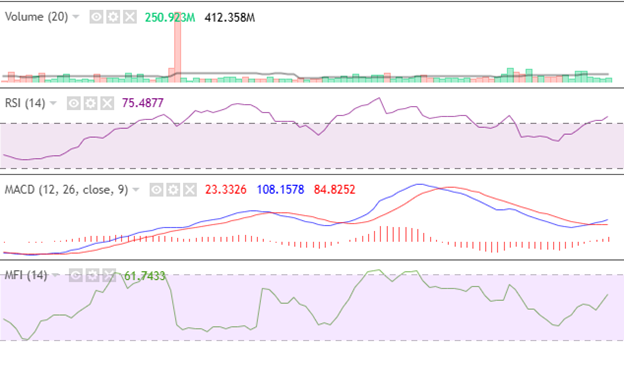 The bullish volume aligned with the overall market sentiment by crossing its moving average at 21.83 million. This indicates a strong bull market. While profit-taking prevailed, liquidity remained sustainable above 50. Finally, MACD has lost its bearish strength, given RSI’s sustained momentum, reading at 84.99