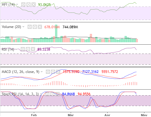 The indicators aligned with the overall bullish sentiment. MACD transitioned into a bullish signal, gaining strong momentum. Stochastic closed at an equilibrium, indicating that investors should be cautious, as the market can pull back anytime. MFI and RSI indicated high liquidity and momentum.