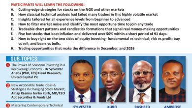 Also, as benefits from the Summit, participants will get free Technical Analysis Navigators that combines timing & trend’ models for trading Nigerian Stocks, Forex, Derivative and Commodities. Facilitators will discuss Stocks to Watch and position ahead of Santa Claus and post-election rally, as well as learn the 10 Golden Stocks To Buy in 2019.