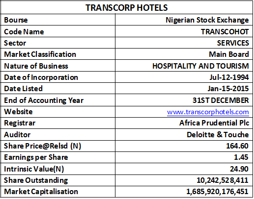 Please understand that based on our estimated intrinsic value for each unit of Transcorp Hotels shares of approximately N25 per share, compared with its market price, we believe that it is currently fundamentally overvalued, suitable only for Long-Term growth investors, expecting strong future expansion rather than near-term returns.