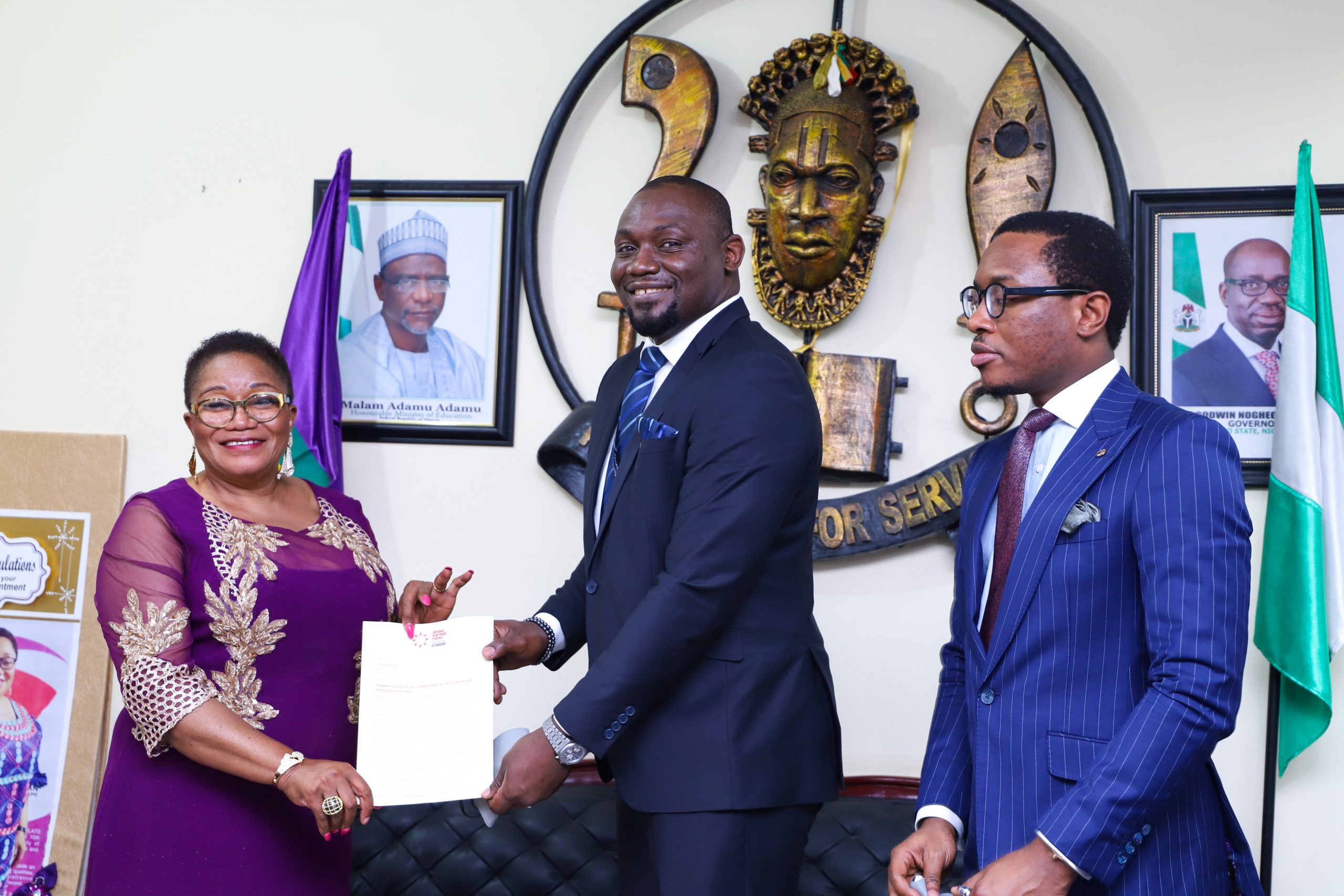 Photo caption: The grant Prof. Lilian Salami, Vice Chancellor, University of Benin (left), receiving the N1bn tertiary education infrastructure grant by The Abdul Samad Rabiu Africa Initiative (ASR Africa) from Ubon Udoh, Managing Director ASR Africa (middle) on Tuesday in Benin City. With them is O’tega Ogra, Group Head Corporate Communications, BUA Group (right).