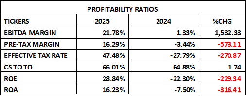 Equity Ratio on the other hand moved up to 56.25% from 33.62%, this increase shows that owners now fund more of the company’s assets evidence of a stronger capital structure, greater financial independence, and reduced dependence on debt. This is also a positive sign showing that investors’ equity forms a larger cushion against losses.