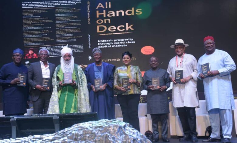 Caption: Former Governor of Ekiti State, Kayode Fayemi; Managing Director, News Central TV, Kayode Akinfemi; Emir of Kano, Muhammadu Sanusi II; Co-ordinating Minister for the Economy and Minister of Finance, Wale Edun; Founder, Oxford Global Think Tank, Arunma Oteh; Governor of Abia State, Dr. Alex Otti; Founder Stanbic IBTC Bank Plc, Atedo Peterside; and Former Senate President, Anyim Pius Anyim, during the Oxford Global Think Tank Leadership conference in Abuja, Tuesday.