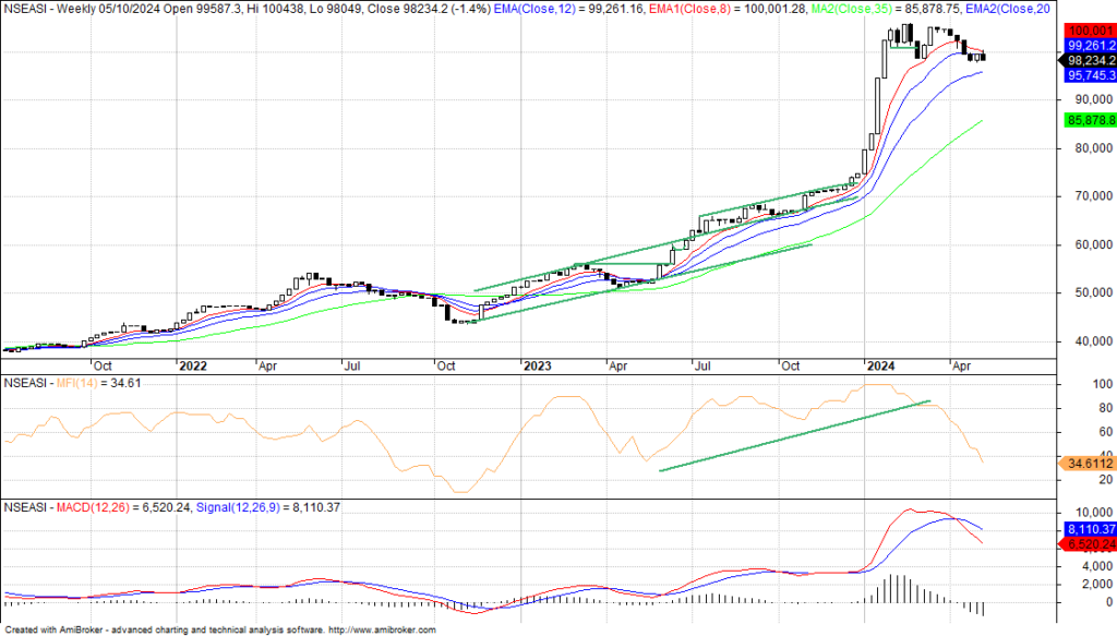 Already, the index has entered a distribution phase on a weekly time frame and ranging in daily chart. We note that the 97,734.56bps is a strong support level on the daily and weekly time frame, even as the index on the weekly time frame is resisting decline. The market is at a critical zone as all eyes are on the more financials to support market fundamentals and attract inflow again. Also, we note that investors are taking long-term positions in the face of dividend expectations and volatility.