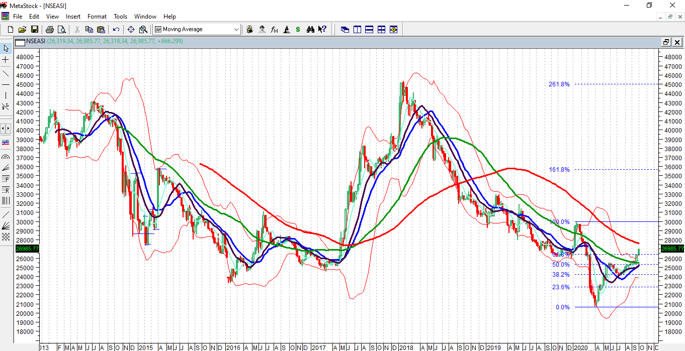 - Critical resistance levels on the NSE as highlighted by the multiple technical analysis strategies are suggesting a range of 27,800.20 basis points to 32,596.50bps, which is now acting as major resistance levels.
