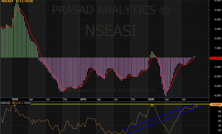 Technically, the money flow index of the market has formed a triple top that signals a breakout or pullback in the coming week depending on the interplay of market forces, especially considering the fact that all the interim dividend banks have fixed their qualification and markdown dates for the next week.