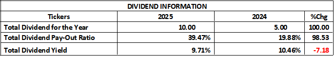 Despite the increase in absolute dividend, the dividend yield declined from 10.46% to 9.71%, primarily due to the rise in market price of the stock, consistent with the earlier observed re-rating in valuation. This indicates that while investors are receiving higher nominal dividends, the return relative to market price has slightly weakened. Overall, Zenith Bank maintains a strong and attractive dividend profile, characterized by higher payouts and solid yield levels, though marginally compressed by upward share price movements.