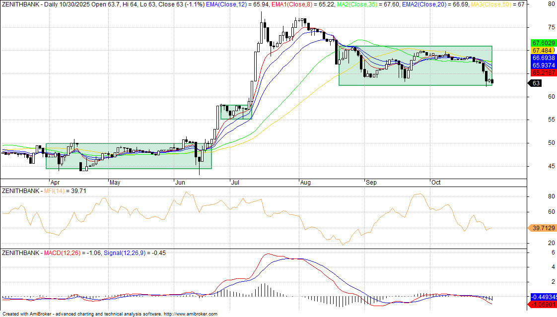 Technically, Zenith Bank is forming a double bottom chart pattern that signals a reversal is underway, given the strong fundamental sentiment around its Q3 results as Nigeria’s most profitable bank. Positive sentiment that comes with pullbacks in a value company like Zenith Bank, which creates a new buying opportunity for smart traders and value investors